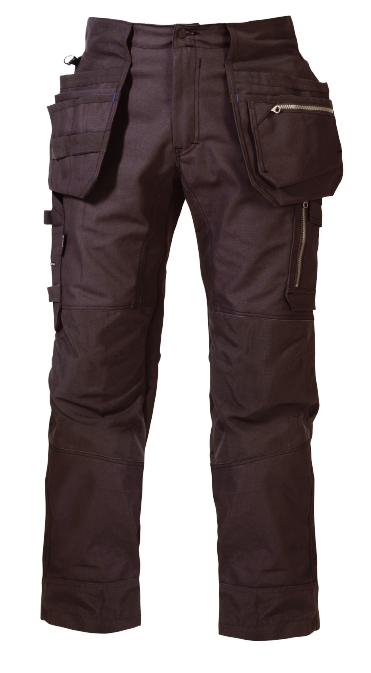 Lisaks kahele küljetaskule on pükstel palju funktsionaalseid taskuid. Vasakpoolsel reiel on vertikaalse lukuga tasku, mobiiltelefonitasku ja suur takjakinnitusega tasku. Parempoolsel reiel on tööriistatasku, noatasku ja pliiatsitasku. Lisaks on pükstel kaks haamriaasa, D-rõngas ja eemaldatav võtmehoidja.
