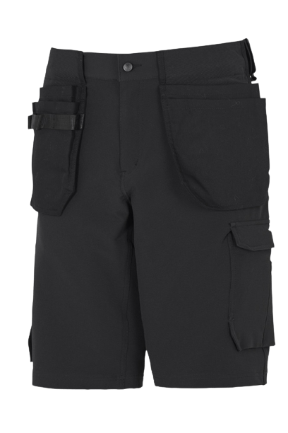 Gesto lühikesed püksid on stretšmaterjalist, mis tagab maksimaalse mugavuse ja liikumisvabaduse. Taskud külgedel ja taga. Vasakult poolt – tasku noahoidjaga ja pliiatsitasku, haamriaasad. Paremalt poolt – lukuga tasku, mobiiltelefonitasku ja ID-kaardi tasku.