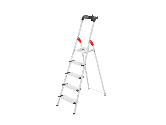 Professionaalne ja kvaliteetne treppredel 5 astet. Redeli ülaosas on multifunktsionaalne alus värvide, tööriistade ja muu vajaliku hoidmiseks. Töökõrgus 307cm, kandevõime 150kg, kaal 5,6kg. Sügavad astmed 130mm. Sobib nii kodumajapidamisse, kui ehitusobjektile.