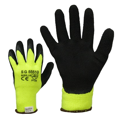 Kootud neoonkollasest akrüüllõngast talvekindad. Töökinnastel peopesal ja sõrmeotstel pehme struktureeritud latekspind tagab väga hea märja ja kuiva haarde. Hingava käeseljaga töökindad.