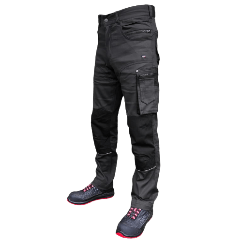 98% puuvilla, 2% elastaani, 260 g/m2. Mugavad ja elastsed. Funktsionaalsed taskud. Kaks tagataskut, 4 esitaskut, mõõdulindi tasku, lukuga suletavad sääretaskud, mobiilitasku. Põlvekaitsetaskud. Kolmekordsed õmblused annavad tugevama vastupidavuse.