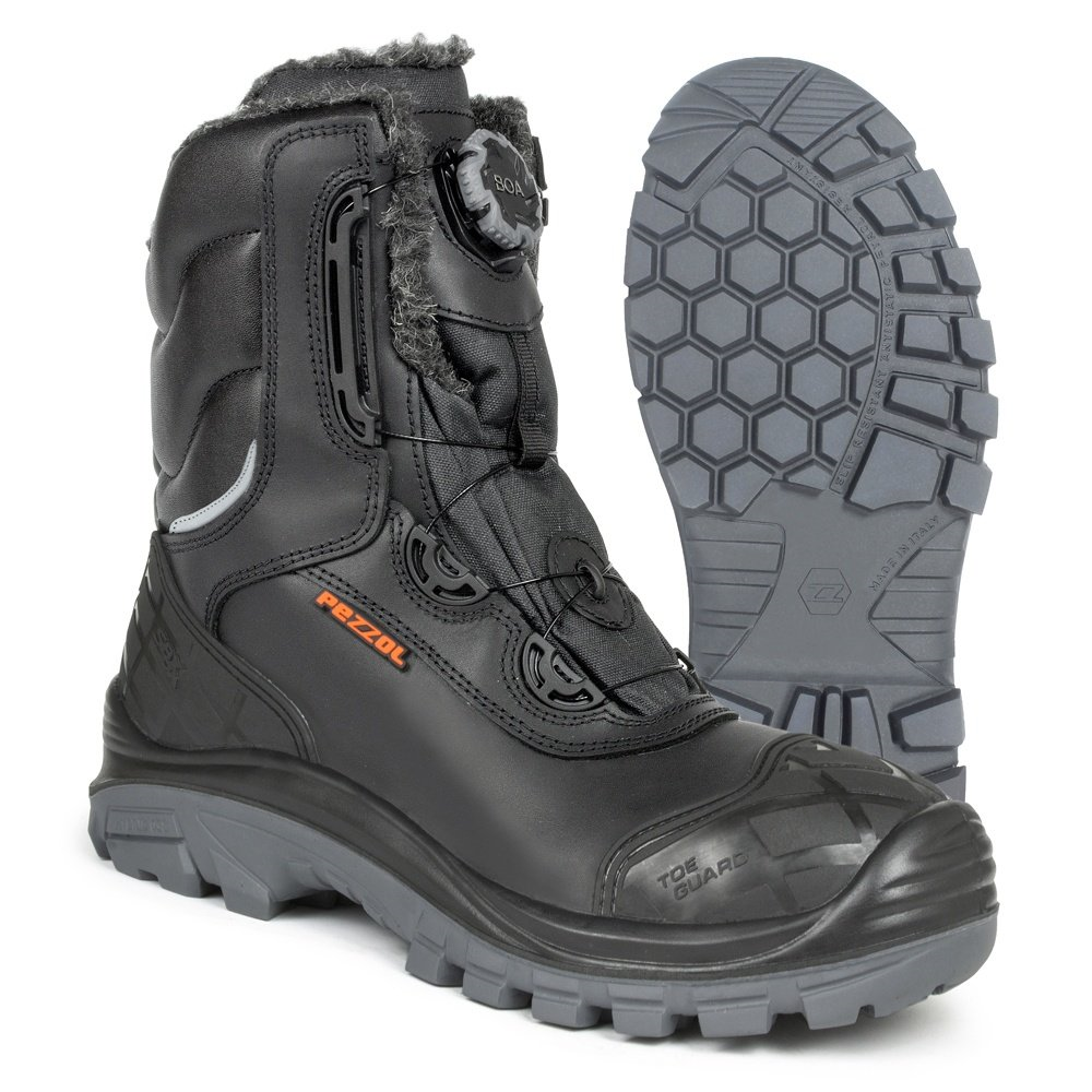 Pezzol külmaks ilmaks sobivad laia liistuga turvasaapad, valmistatud Idrotech täisnahast, millel on kõrge veekindlus. Boa® Fit System koosneb mikroreguleeritavast pitsist sihverplaadist, ülitugevast kergest ja vähese hõõrdumisega pitsijuhikutest; loodud lihtsaks, täpseks ja ohutuks reguleerimiseks. Täiendavad TPU-sisustused pahkluu ja esiosas tagavad maksimaalse kaitse põrutuste, hõõrdumise ja vedelike eest. Kõrge soojusisolatsiooniga lambavillast ja WINTHERM®-ist vooder. Hingavale kangale on iseloomulik alumiiniumist mikrokile, mis võimaldab talvejalatsites sooja hoida ka väga madalatel temperatuuridel. Kahekomponentne Hybrid Pu-Rubber Ice Grip tagab hea paindlikkuse ja mugavuse miinustemperatuuridel. Ice Grip tehnoloogiaga tald on valmistatud kummisegu kiududest, mis võimaldavad vedelikke jäistel pindadel ära voolata ja imada, et tagada suurepärane libisemiskindlus. Libisemiskindlus on testitud SATRA laborites metallrestidel ja puittellinguplaatidel. Compo200 polümeerist varbakate ja torkevastane Txzero tekstiilist vahetükk tagavad äärmise kerguse, kaitse ja paindlikkuse.