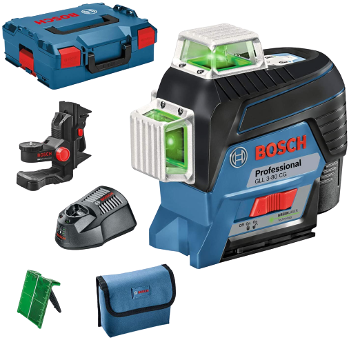 Joonlaser GLL 3-80 CG Professional on lihtsalt ühendatav ja projitseerib 3 x 360 ° jooni maksimaalse nähtavuse saavutamiseks. Eredate roheliste laserjoonte nähtavus on võrreldes punaste laserjoontega kuni neli korda parem. Uuenduslik CAL Guard seire ja Bluetooth®-ühendusega nutitelefonirakendus võimaldavad seadet eemalt juhtida ja samuti suure täpsusega kontaktivabalt reguleerida. Selle tööriista 3 x 360° jooned võimaldavad samaaegselt horisontaalset ja vertikaalset nivelleerimist, et töötamine oleks võimalikult tõhus.