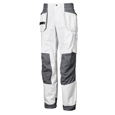 Mugavad ripptaskutega valged püksid mis sobivad viimistlustöödeks.